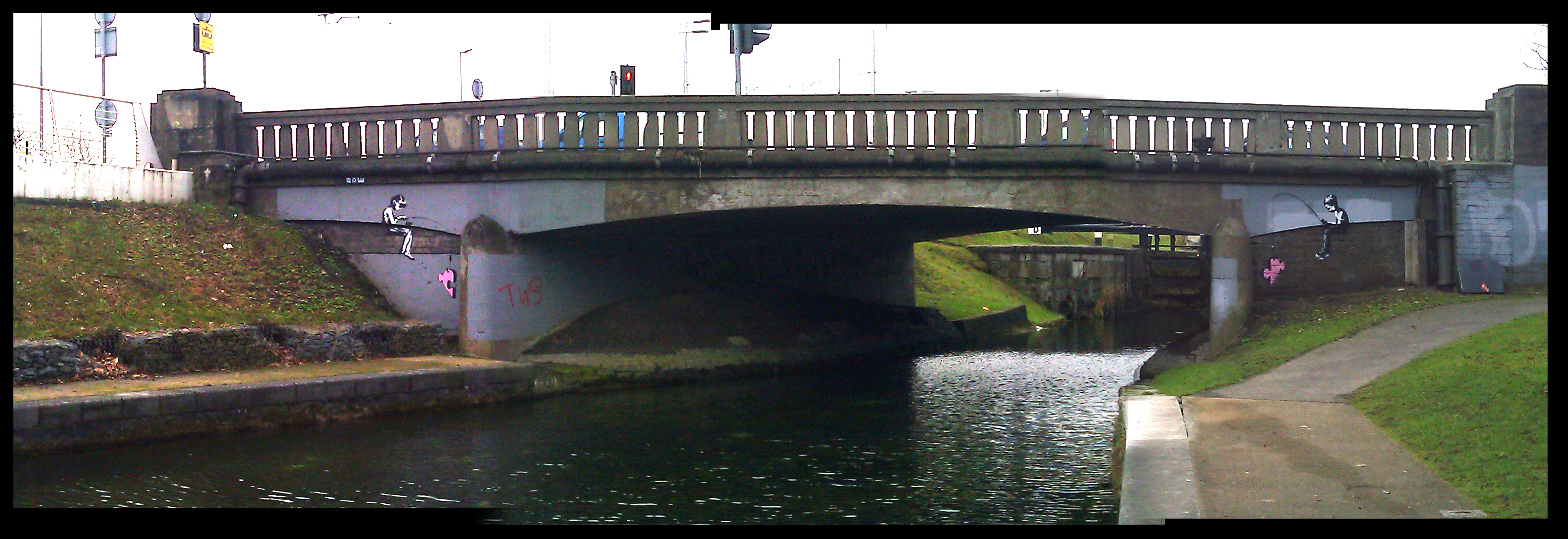 A work that ADW did in early 2011, called Game of Love, on Suir Road Bridge, Dublin 8 unfortunately didn’t last long. This was a piece that he had in mind for a long time and wanted to situate it at a meaningful site. In December 2010, a couple tragically drowned along the stretch of canal below this bridge. It is thought that one of them fell into the canal because of the icy conditions, and that the other drowned during a rescue attempt. ADW placed this piece here as a sort of memorial to the couple.