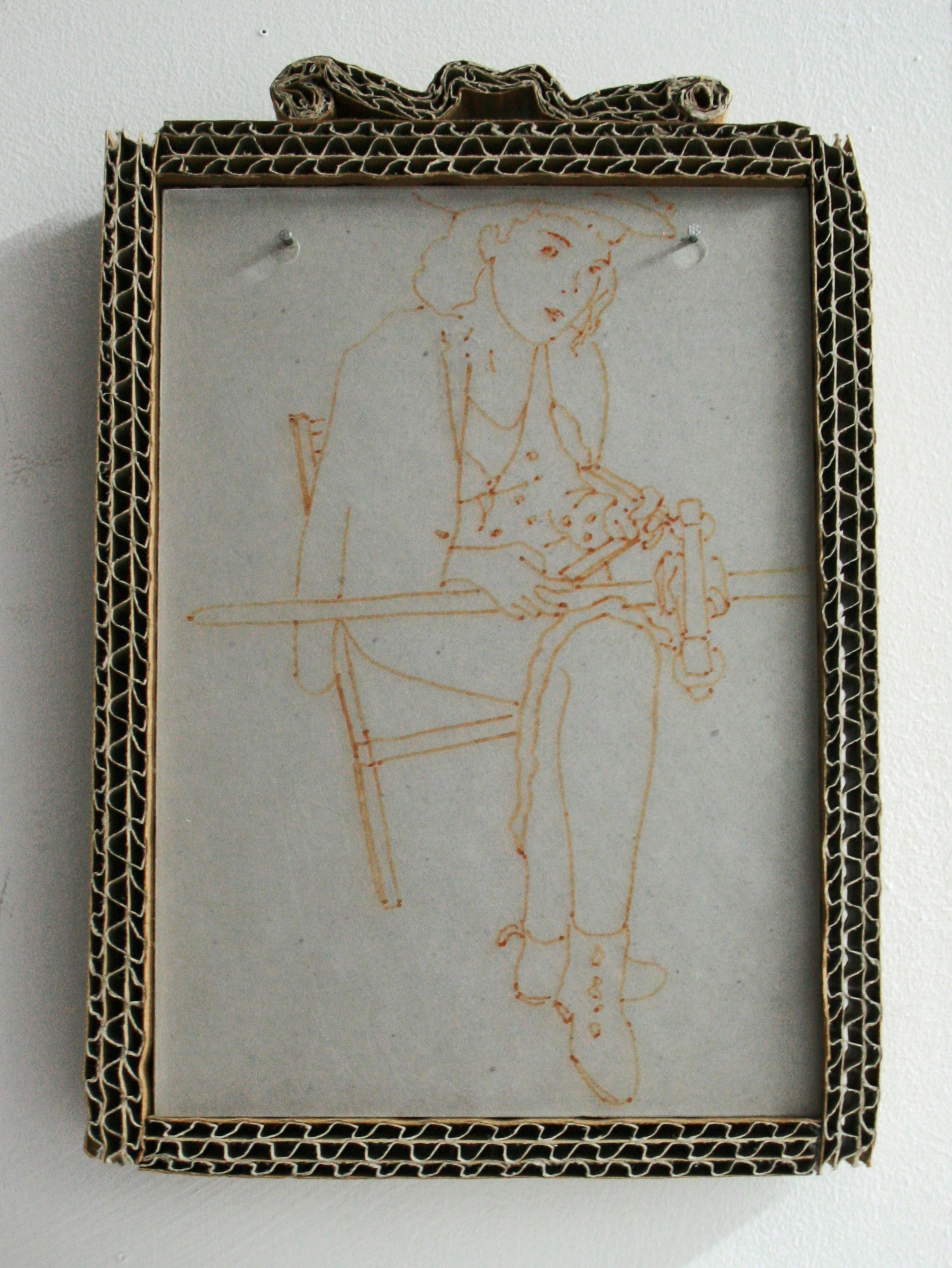 A recurring character runs through some of Anthony’s work. This is the character of Judith. Judith came about because Anthony liked the idea of people “empathising with a character; a mythological, heroic character.” Anthony was conscious of the fact that there are very few heroic women characters in the bible – they are mostly associated with sin! – so he thought this was an interesting area to explore through his art. For one of the Judith projects he decided to set up what he referred to as a kind of spontaneous theatre. When there were events going on in the gallery next to his studio (The Back Loft), Anthony approached women coming or going and asked them if they would like to be involved in a performance or interactive art piece. He also invited specific people to take part. He then explained the character of Judith to them – she was a heroic character from the Old Testament who pretended to switch to the side of her enemy in order to get close enough to him to cut off his head. He gave each woman a sword, a helmet and a template of the outline of an image by the artist Artemisia Gentileschi called Judith Slaying Holofernes (1640 – 20) where we see Judith cutting off Holofernes’ head. After the participants are told the story of Judith, they then draw on the template with coloured pens “the faces of the protagonists of this psycho drama.” As they were drawing, Anthony was able to photograph them in character. He then used these photographs as a template and traced certain elements onto acetate to create a new work. In a way, he is bringing Judith into the modern world by channelling elements of her character through different women.