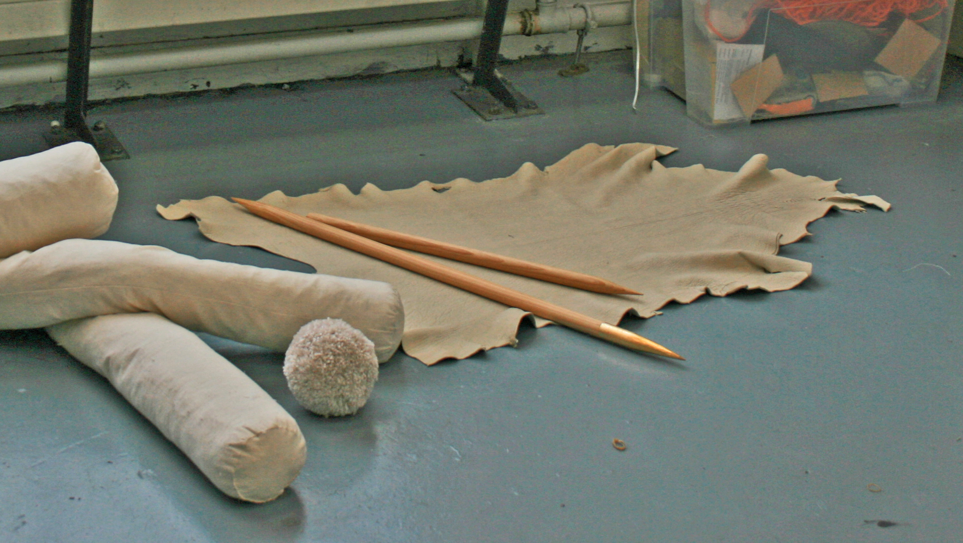 Barbara is interested in how value and meaning are constructed through objects. This leads her to taking an object that is already in circulation culturally and seeing how “revising it or changing it slightly can cause the meaning to change”. She refers to the broomsticks as an example. She says they are very basic objects, they are mass produced pieces of wood and are available anywhere around the world. Barbara has simply whittled down the end and it is this action that changes the object and has removed it from its original purpose. She is not interested in changing the structure or the form radically; she has made minimal intervention. This is how Barbara refers to value and meaning in her work – she says there is the thought of “how little do I have to do to this before it is changed? It’s trying to find that point and not go beyond it”. The idea of the labour that has previously gone into these objects interests her too. They are usually mass produced by people or by machines and her doing something to them, however small, changes its value. It continues to be a mass produced object but now has another value, so it becomes an art object. It’s the ‘handmade fashion’ of the intervention that attracts Barbara to this work.