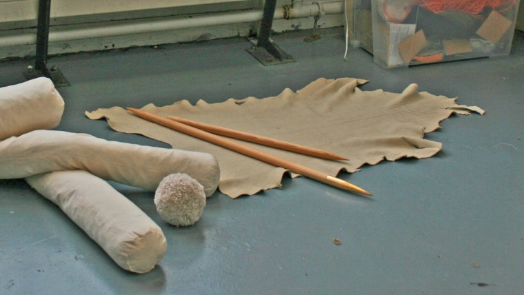 Barbara does not necessarily have a methodology to the way she works. She says that because the materials she uses are so diverse, one thing she has learnt is that she has had to become very adaptive with new skills and techniques. From moulding leather to sewing, she says that the internet has been a great resource for her in terms of learning these kinds of practical things.